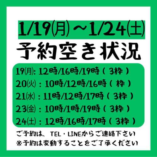 【2026.1/19~2026.1/24までの予約空き状況】