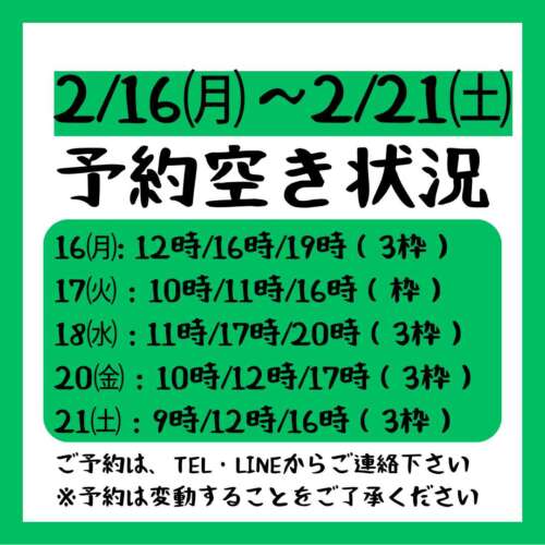 【2026.2/16~2026.2/21までの予約空き状況】