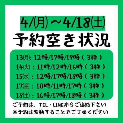 受付やお電話(082-424-4738)にてご都合の良い時間帯をご指定下さい。
