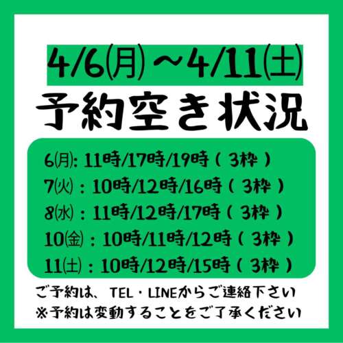 【2026.4/6~2026.4/11までの予約空き状況】