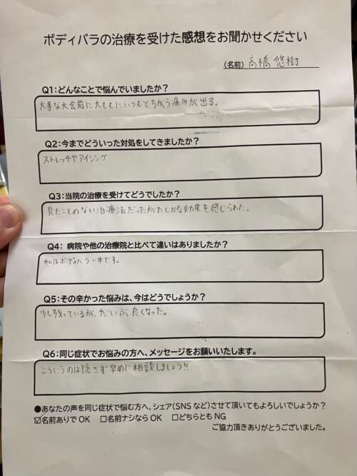 大事な大会の前に、太ももにいつもと違う痛みが出る