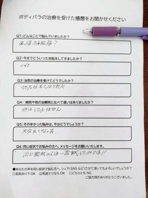 悩み箇所・症状: 腰痛 腰坐骨神経痛