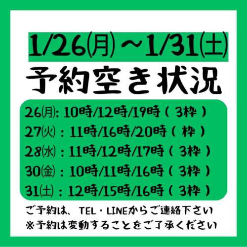 【2026.1/26~2026.1/31までの予約空き状況】