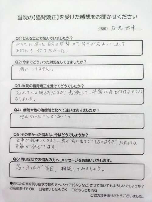 悩み箇所・症状: 猫背 背中背中がどうしても丸くなる